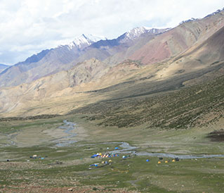 This is the trek's shortest day. As a result, relax and attempt to appreciate the beauty in your surroundings. The trip begins with rough rocks, but the breathtaking vistas of Kang Yatse will make it worthwhile. The trail descends over the second half. You will reach your base camp at 5,100 meters in about 2-3 hours. To get acclimatized, make sure you stay out of the tent. At the camping site, try not to overwork yourself and rest. This is the perfect time to observe the mountains around you and attempt to photograph as much as possible.